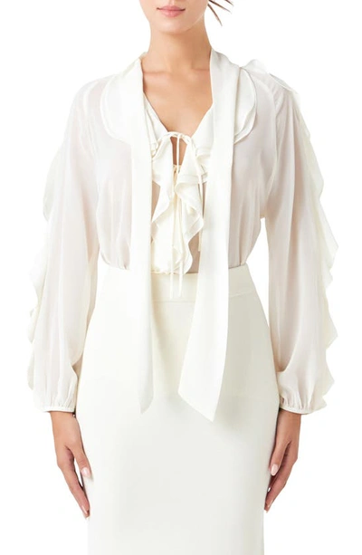 Sheer Chiffon Ruffle Shirt In Cream