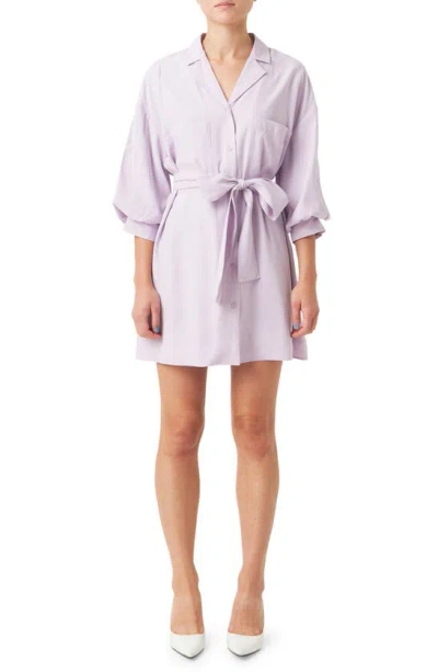 Tie Waist Mini Shirtdress In Lilac