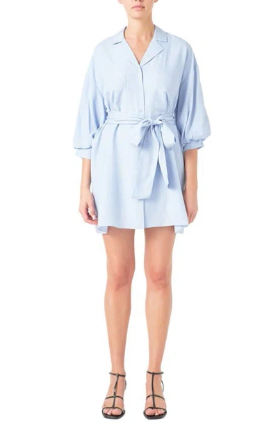 Tie Waist Mini Shirtdress In Powder Blue