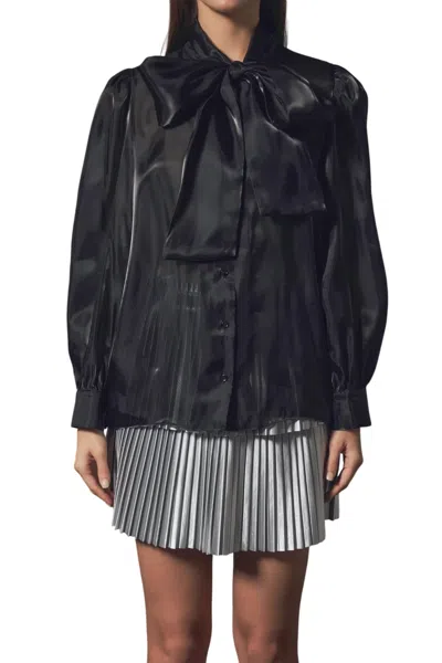 Floral Shirred Puff Sleeve Organza Dress In Black Navy