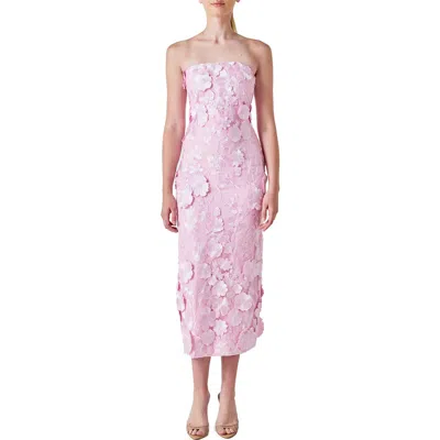 Mixed 3d Flower Knit Maxi Dress In Purple