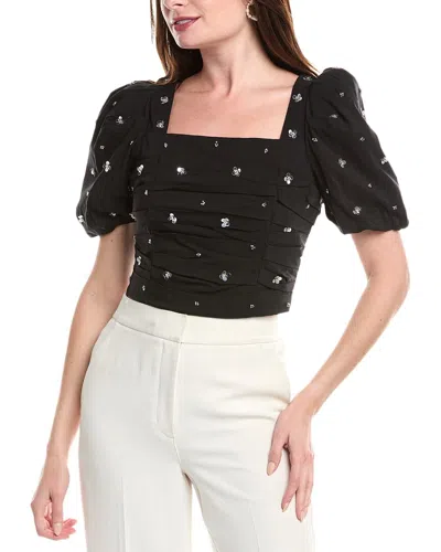 Embellished Pleated Top In Black