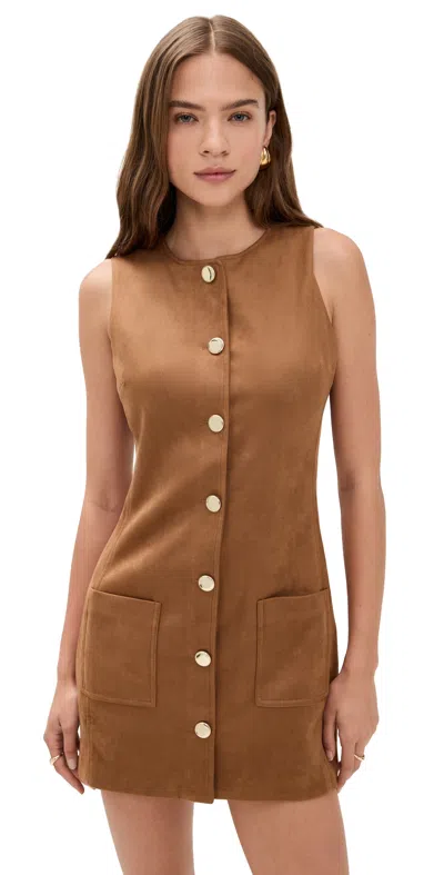 Faux Suede Round Neck Buttoned Mini Dress Camel In Brown