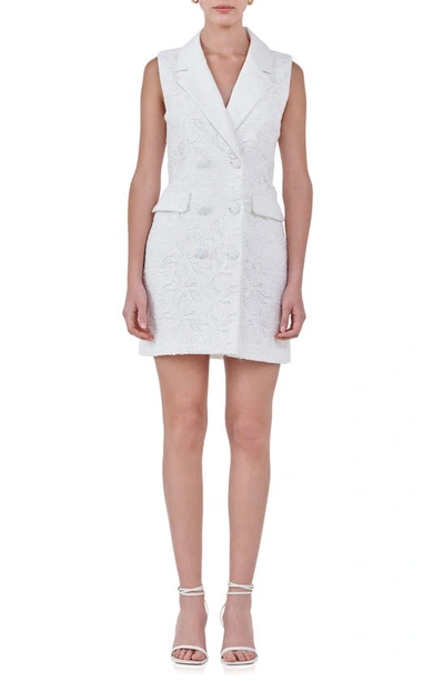 Women's Laced Sleeveless Blazer Mini Dress In White