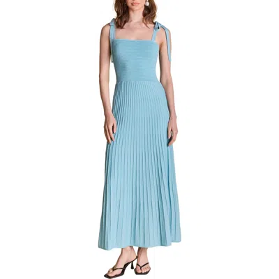 Tie Strap Metallic Maxi Sweater Dress In Blue
