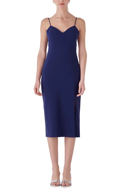 Asymmetric Neck Long Sleeve Sweater Dress In Navy