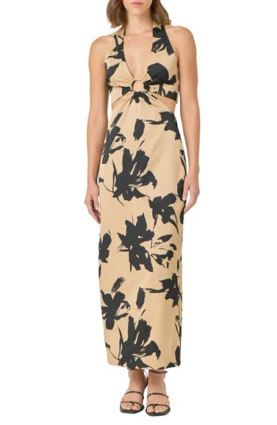 Floral Cutout O-ring Maxi Dress In Beige/black