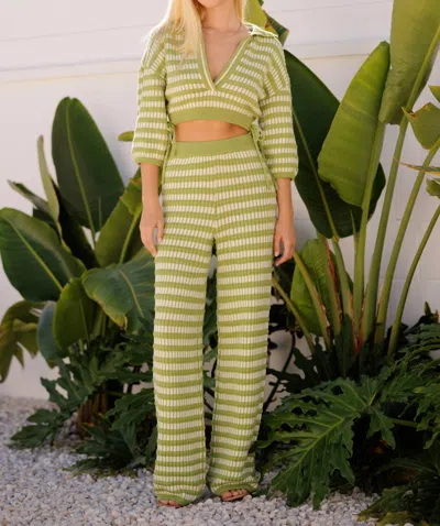 V-neck Stripe Knit Top In Avo In Multi