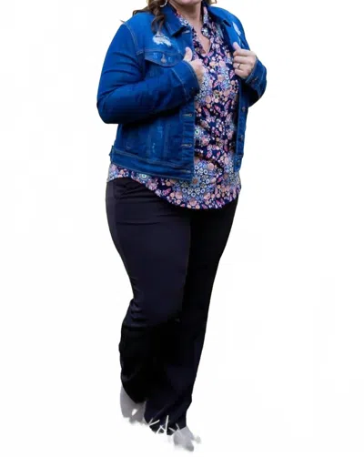Classic Destructed Denim Jacket - Plus In Dark Wash In Blue
