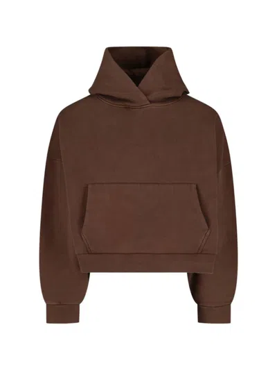 Cotton Hooded Sweatshirt Front Pocket In Brown
