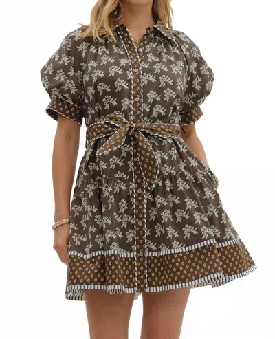 Autumn Breeze Mini Dress In Floral Scallop Motif In Brown