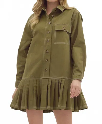 Leopard Printed Mini Denim Dress In Olive In Brown