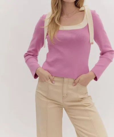 Long Sleeve Top In Bubble Gum Pink And Cream
