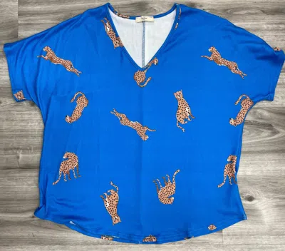 Women's Cheetah Top In Colbalt Blue In Multi