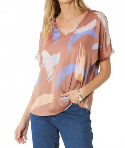 Brushstroke V-neck Top In Brown In Orange