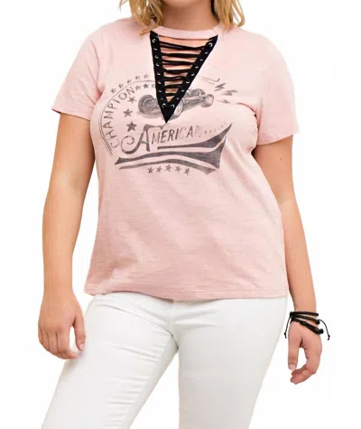 Lace Up Graphic Tee In Blush In Gold