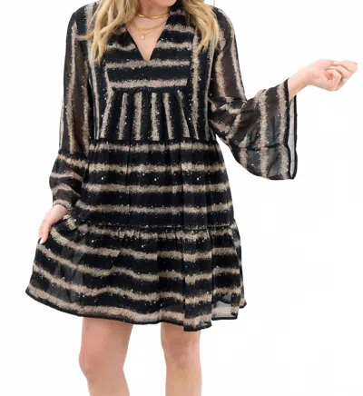 Paint Stripes And Dots Long Sleeve Dress In Black