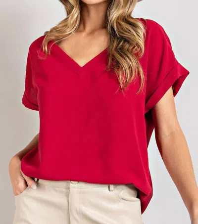 Short Sleeve V Neck Top In Wine In Pink