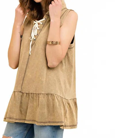 Washed Hooded Top In Olive In Brown