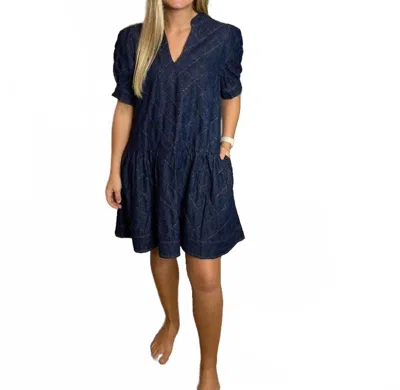 Diamond Stitch Pattern Dress In Dark Denim In Blue