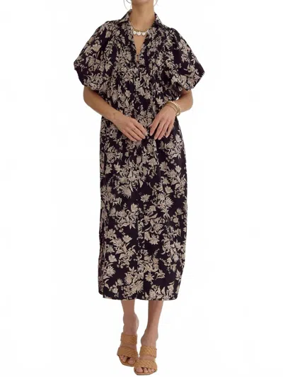 Floral Bell Sleeve Mini Dress In Multi In Black
