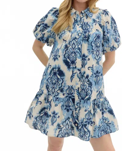 Bubble Sleeve Babydoll Top In Royal In Blue