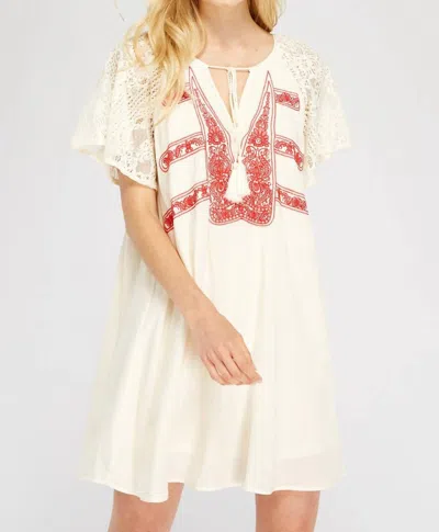 Boho-inspired Short Puff Sleeve Ruffle Hem Mini Dress In Ivory In Multi