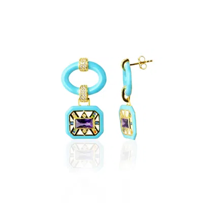 Women's Silver Yellow Stone Radiant Cut Stone Hoop Earring