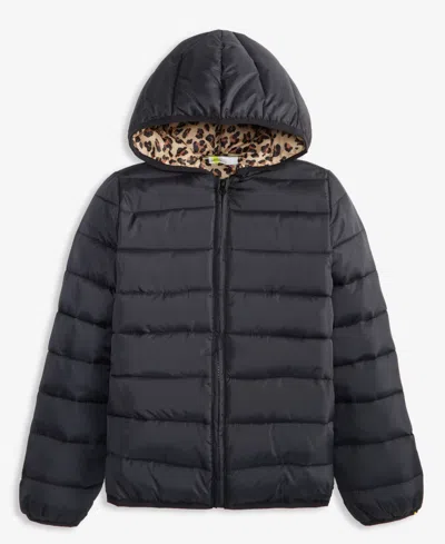 Girls 5-20 Heart Print Packable Long-sleeve Jacket, Macy's Exclusive In Black