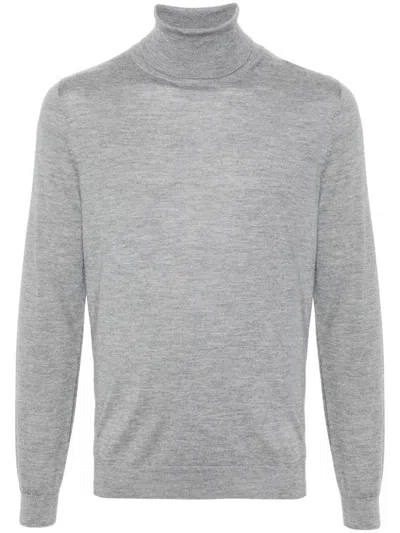 Fein Gestrickter Rollkragenpullover In Grau