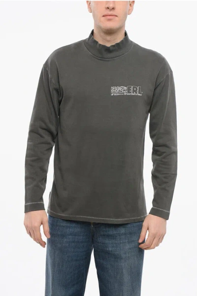 Brushed Cotton Mock-neck Sweatshirt With Contrasting Print In Grey