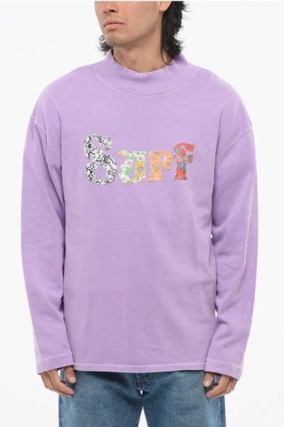 Solid Color Mock-neck Sweatshirt With Contrasting Patches In Purple