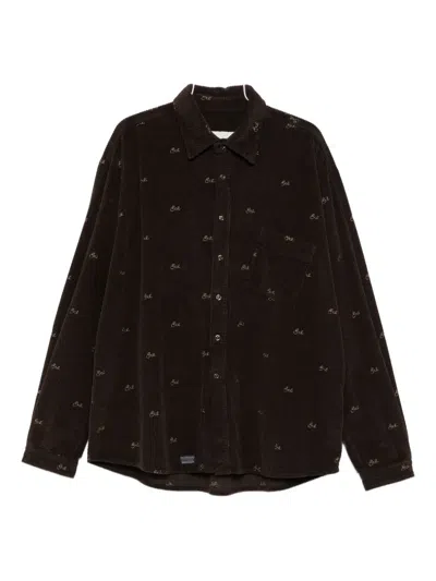 Corduroy Logo-embroidered Shirt Jacket In Brown