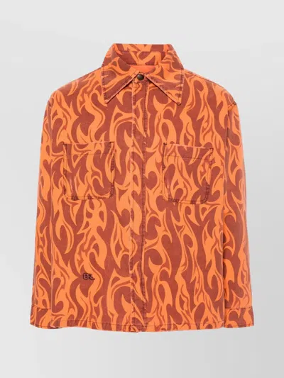 Flame Print Canvas Shirt Jacket In Orange Flame