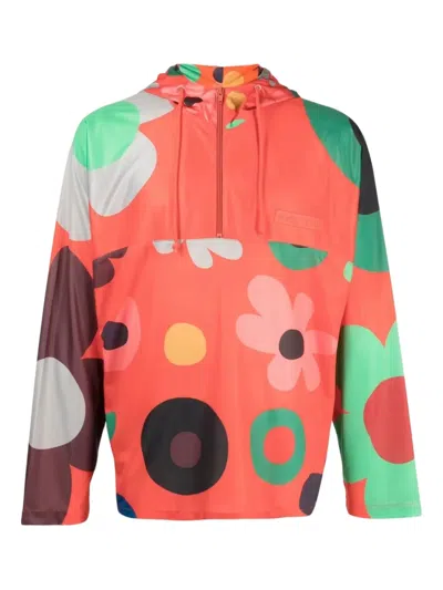 Floral-print Half-zip Jacket In Orange