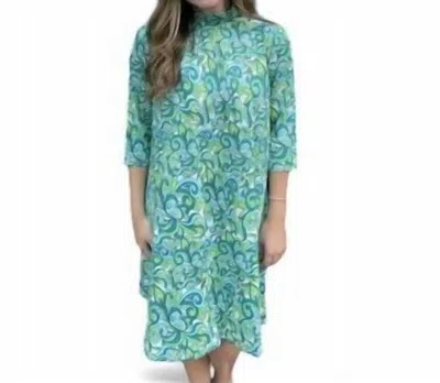 Swirl Print Moc Neck Dress In Blue/green In Multi