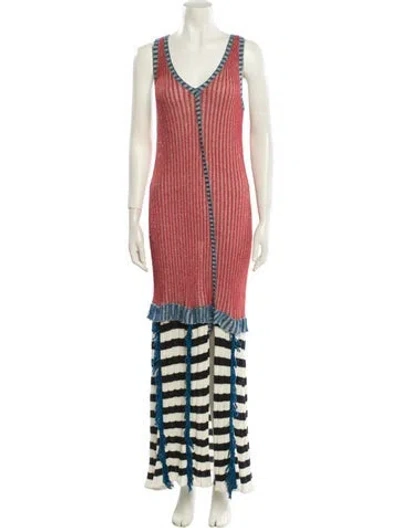 Pre-owned Striped Midi Length Dress W/ Tags In Orange