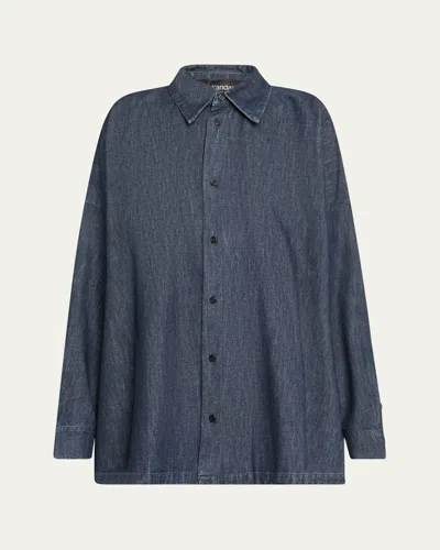 Angled-to-front Side Seam Denim Shirt With Collar (long Length) In Blue