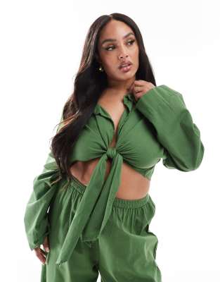 Exclusive Loose Tie Front Beach Shirt In Green