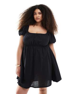 Exclusive Puff Sleeve Tie Front Mini Beach Dress In Black