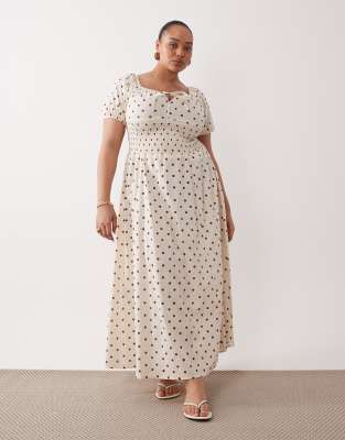 Esmée Curve Puff Sleeve Tie Front Beach Maxi Dress In White