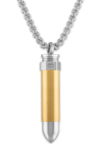 Two-tone Stainless Steel Diamond Dog Tag Pendant Necklace In Gold