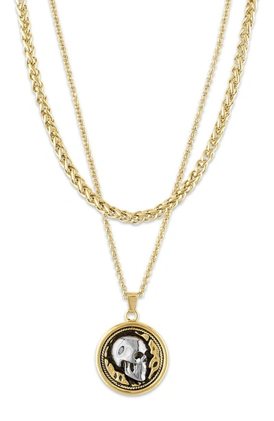 Set Of 2 Skull Pendant & Chain Necklaces In Gold
