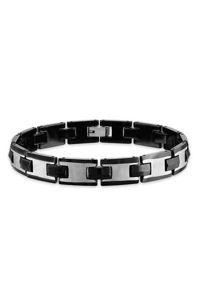 Stainless Steel Black Diamond Bar Bracelet In Metallic