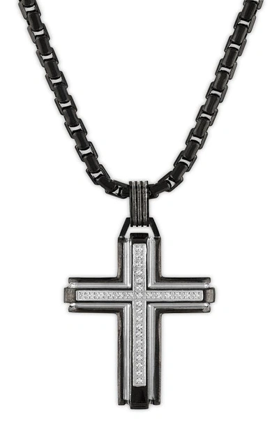 Cubic Zirconia Carbon Fiber Cross Pendant In Black