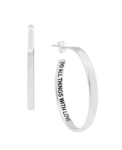 And Now This Polished "do All Things With Love" Message C-hoop Earring In Silver Plate