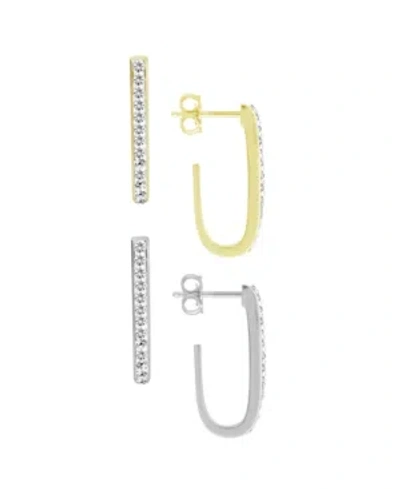 Crystal Bar Stud Pave Oval Hoop Duo Earring Set, Gold Plate And Silver Plate