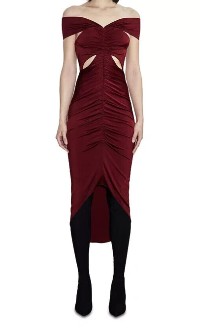 Pre-owned Everly Off The Shoulder Midi Dress Women's 8 Crimson Side Zip Closure In Red
