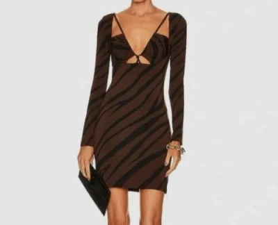 Pre-owned $1295 Women's Brown Aida Long-sleeve Gathered Cutout Dress Size 6