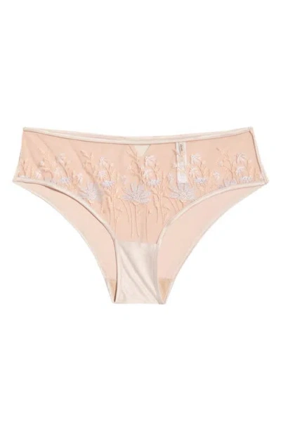 Champetre Embroidered Satin & Mesh Briefs In Neutral